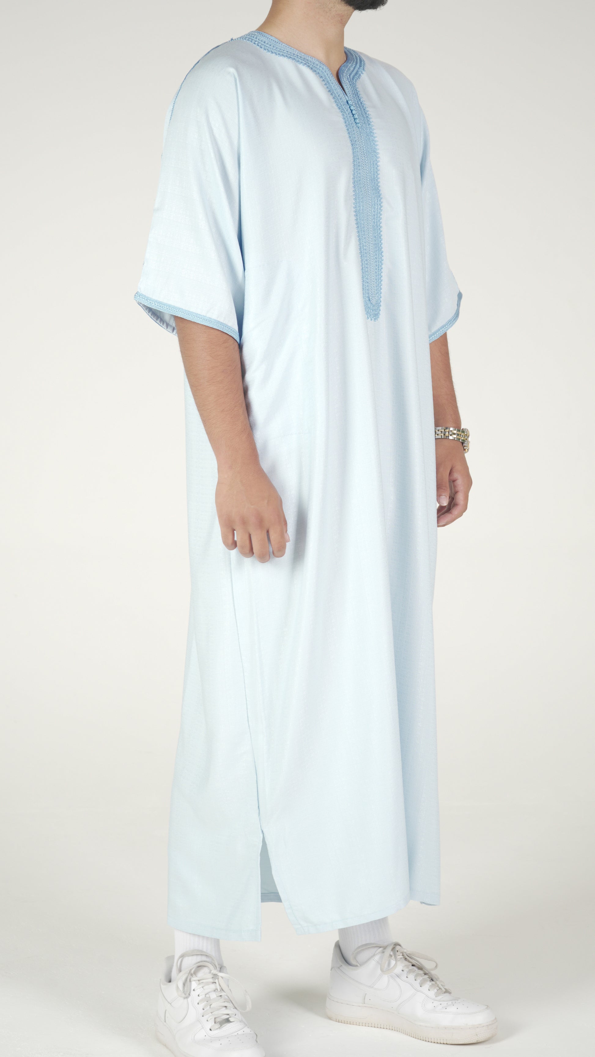 Our Thobes come with one regular pocket and one slit to give you easy access to your pant pockets. This design is to help put your phone wallet in your regular pocket.