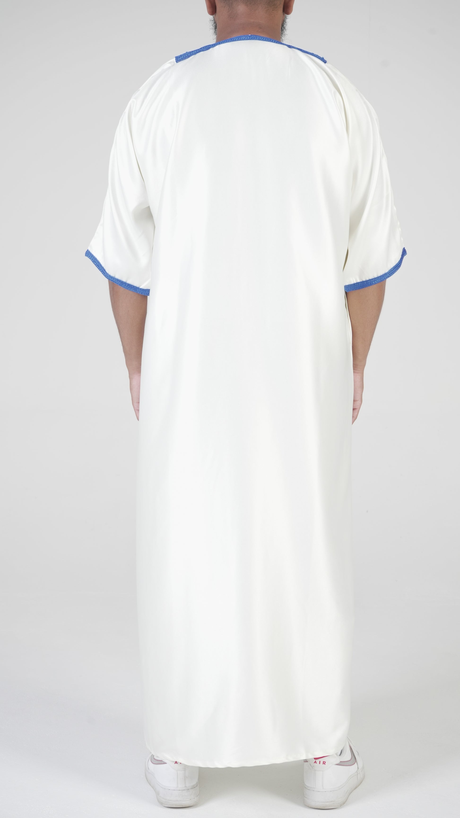 Our Thobes come with one regular pocket and one slit to give you easy access to your pant pockets. This design is to help put your phone wallet in your regular pocket.